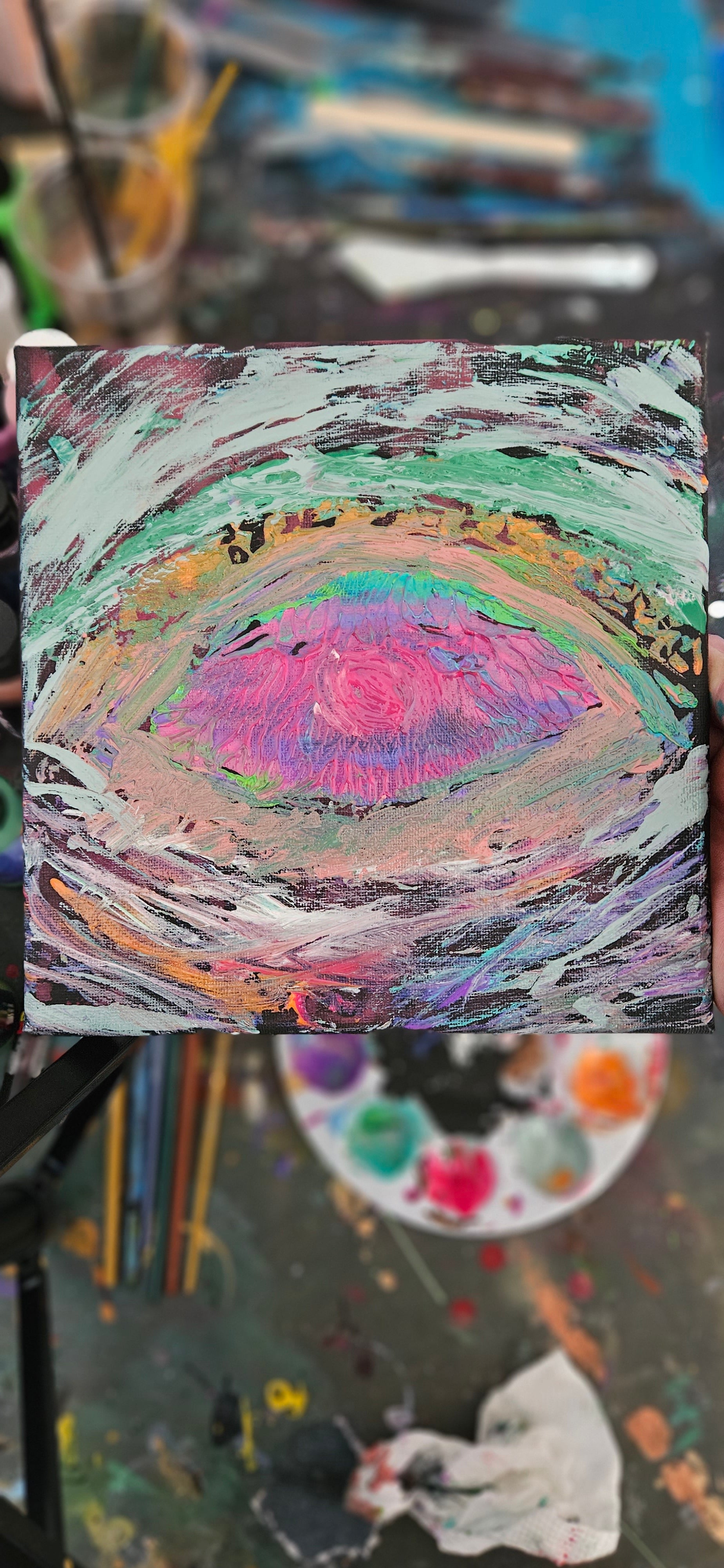 Art "Desk Glamor Eye 1" by DFB Abstract Acrylic Painting on 8x8in Canvas